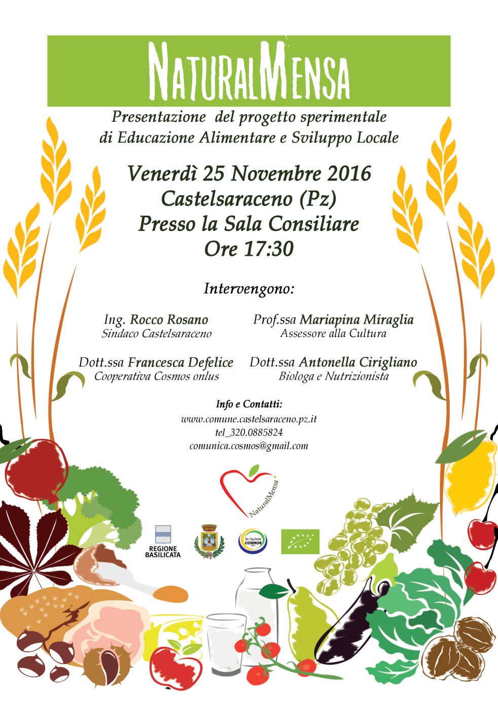 Il 25 Novembre, alle ore 17:30, presso la Sala Consiliare del Comune di Castelsaraceno è in programma la presentazione del progetto sperimentale NaturalMensa